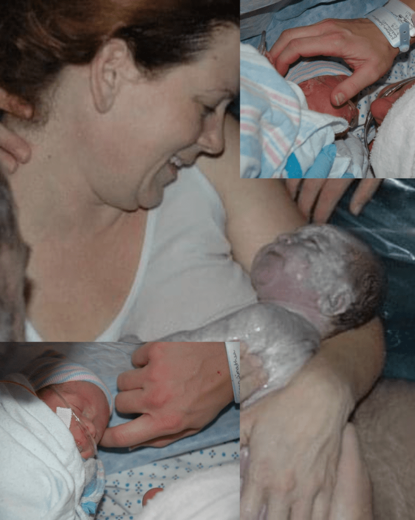 Above you can see the birth of my son at home and the top and bottom pictures are of the twins after their cesarean births. They looked very different, but they were equally empowering! The power of decision was never taken from me. That is what birth should be. It should be a trusting environment. A room full of love and belief in the birther to make the right decisions for both them and their baby.